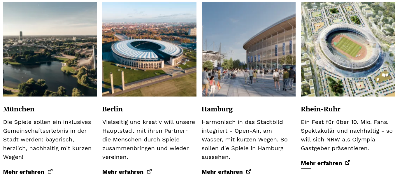 Manche Städte, wie Berlin oder Rostock wollen bisher ihre Bürger:innen gar nicht fragen. IOC und DOSB erwarten aber schon Nachweise für eine Unterstützung der Bevölkerung. Daran sind sowohl Hamburg als auch Kiel letztes mal gescheitert.