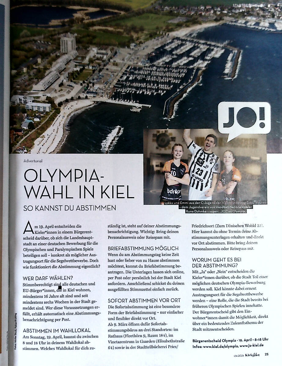 Laut Auskunft der Medienanstalt Hamburg / Schleswig-Holstein (MA HSH) wurde nach Prüfung der Olympia-Werbung in der April-Ausgabe des Magazins KIELerleben dürfte ein Verstoß gegen § 22 Abs. 1 Satz 3 Medienstaatsvertrag (MStV) vorliegen, wonach bei Werbung politischer Art auf den Werbetreibenden oder Auftraggeber in angemessener Weise deutlich hingewiesen werden muss.
