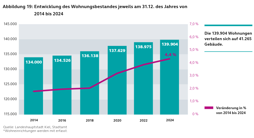 Hier eine Grafik zu der Entwicklung des Wohnungsbestandes in Kiel aus dem Sozialbericht 2025 der Stadt Kiel